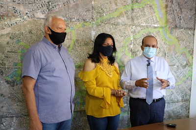 Ibaneis, ao lado da administradora Telma Rufino e o secretário de Governo José Humberto Pires anunciou as benfeitorias para a cidade.