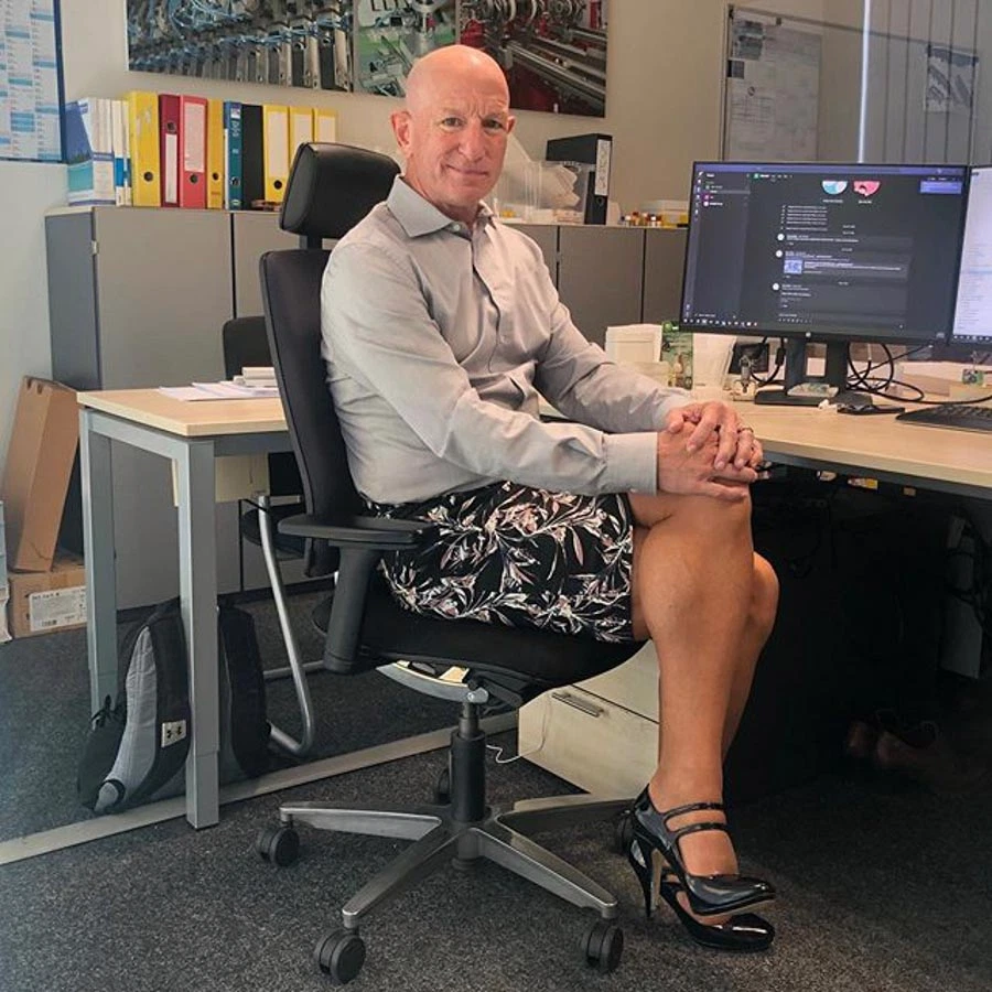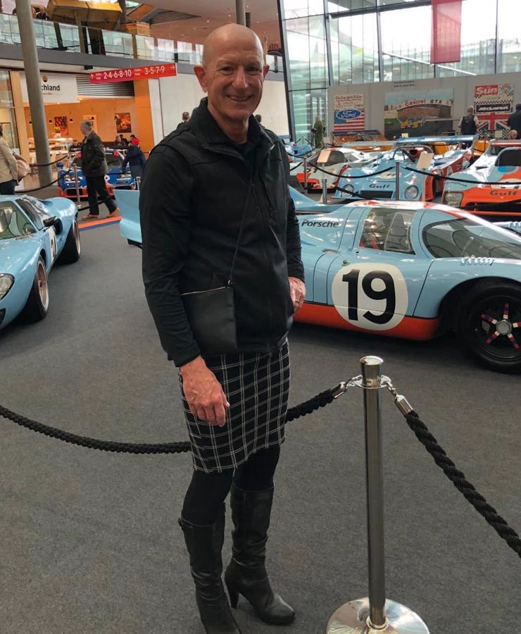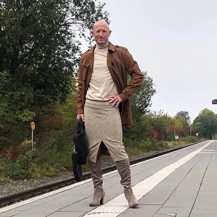 Mark Bryan, um americano de 61 anos, morador na Alemanha, desafiadoramente veste saias justas e salto alto para o trabalho nas lojas e até mesmo em casa, para provar que as roupas não têm gênero.