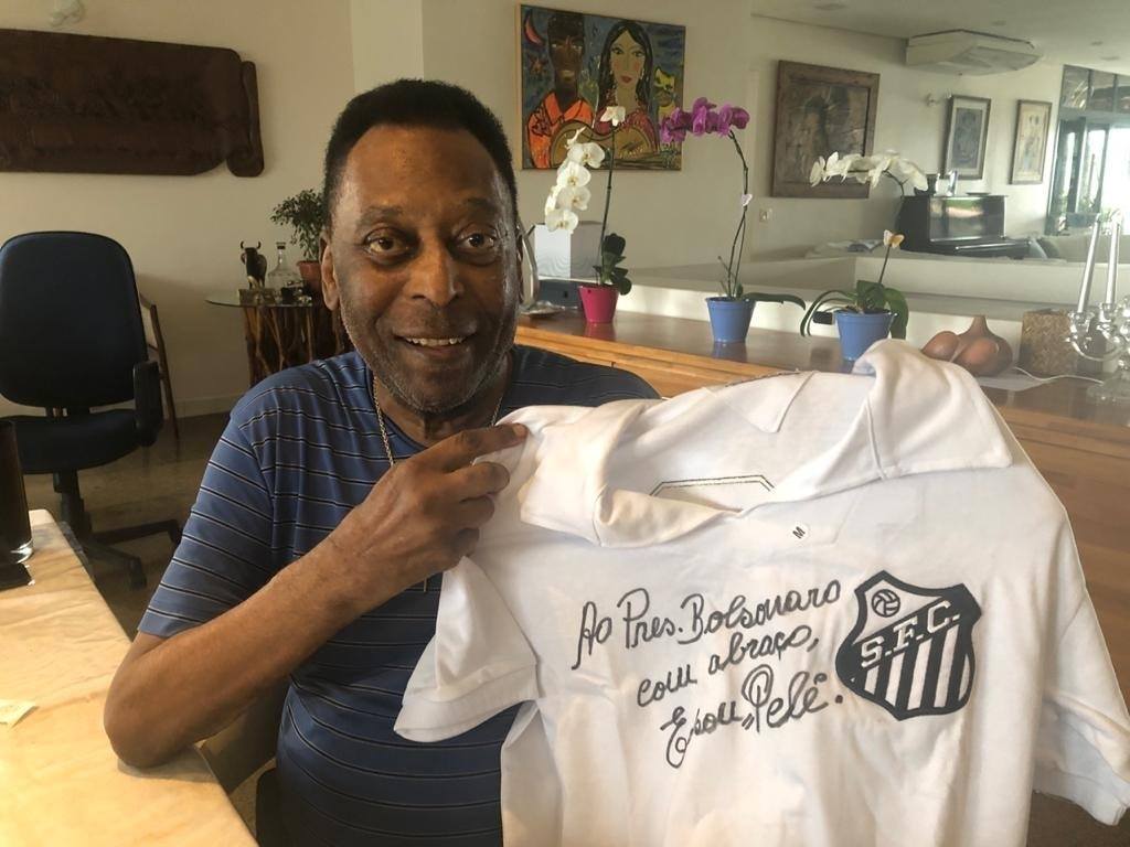Edson Arantes do Nascimento, o rei Pelé, faz dedicatória em camisa do Santos Futebol Clube ao presidente Bolsonaro e especulações tomam as redes sociais. Pelé estaria fechado com Bolsonaro?