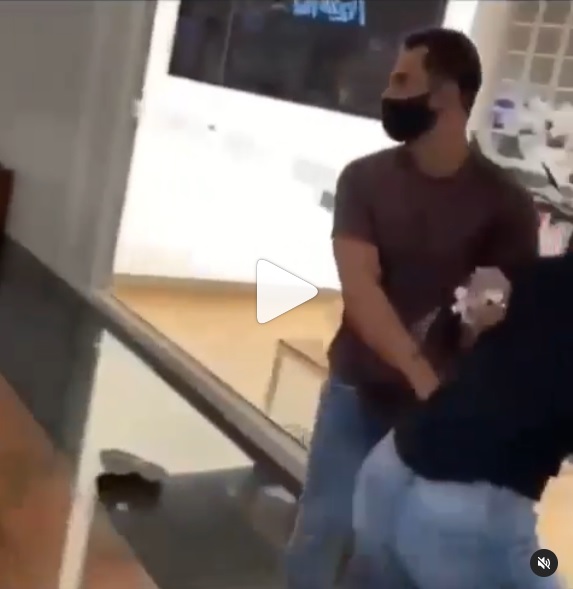 Nas imagens, a cantora tenta se desvencilhar do marido enquanto é levada pelo braço a força. Três homens se aproximam para intervir na situação.