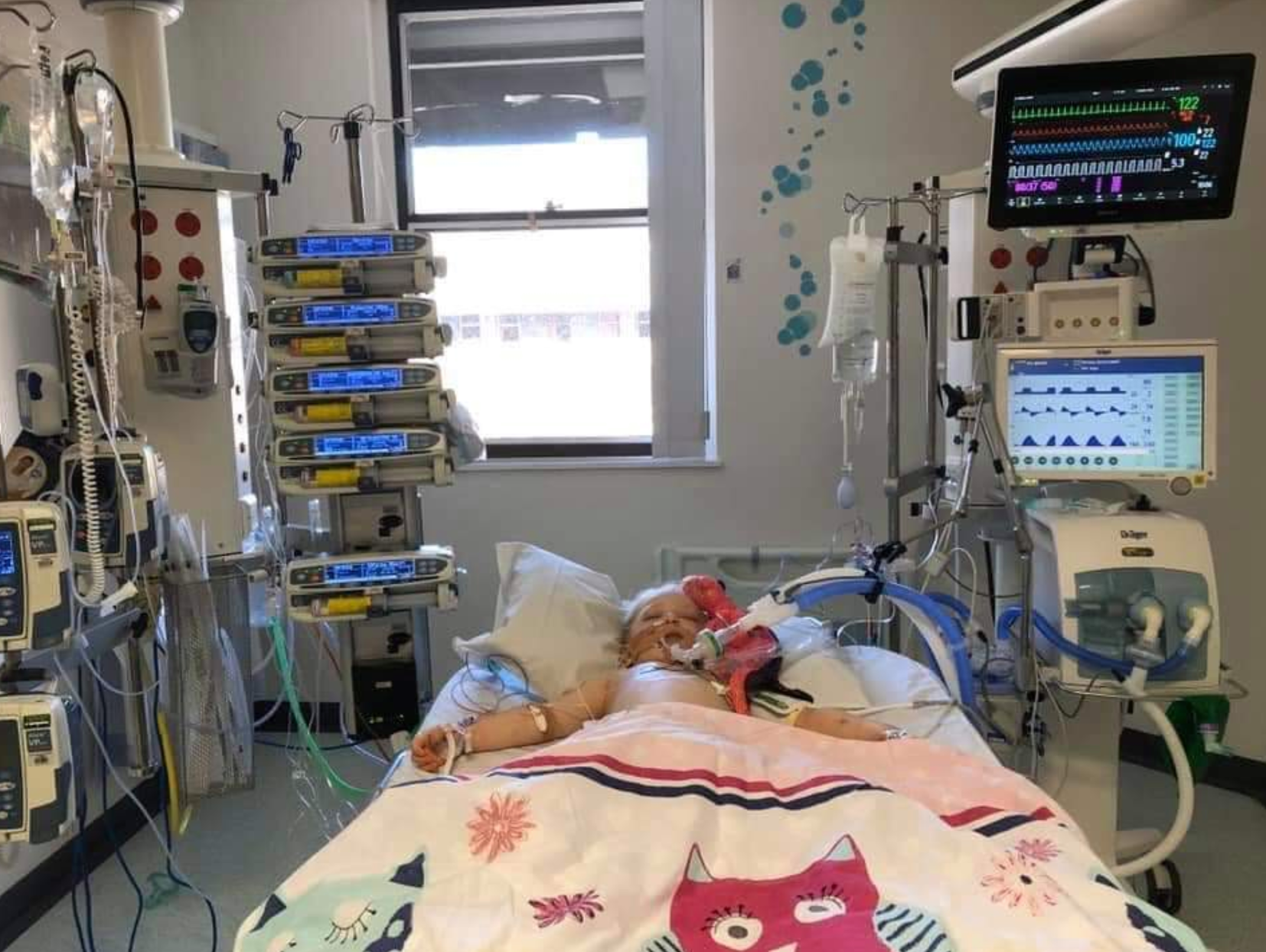 Sua tia, June, também compartilhou a foto comovente da criança de cinco anos ligada a um respirador, que viralizou.