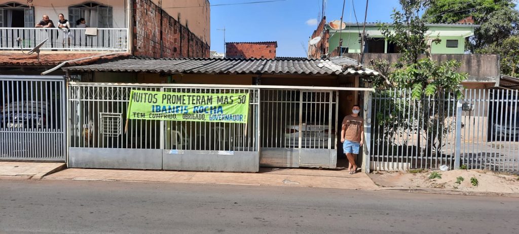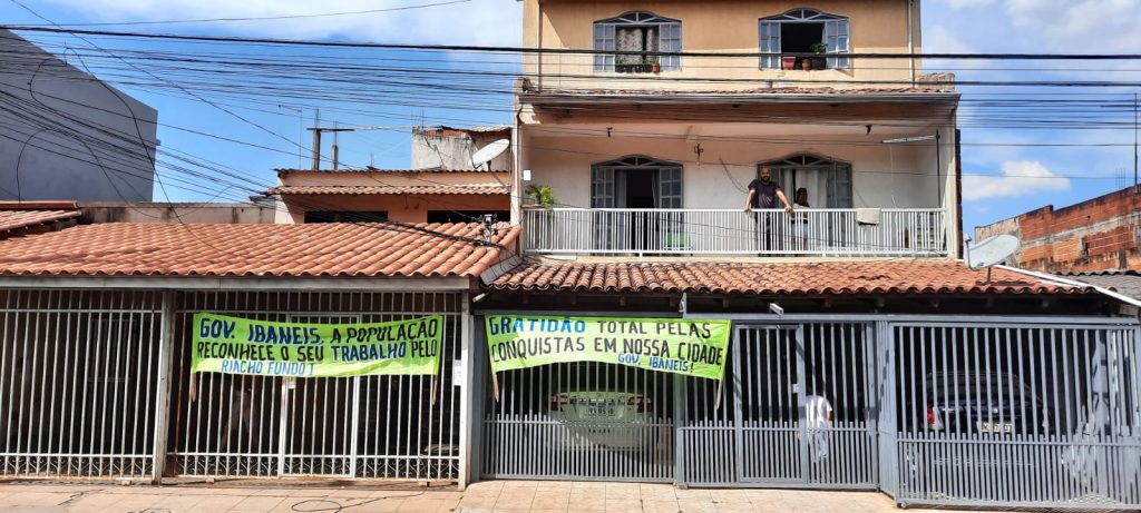 Moradores em frente à Praça Ayrton Senna fizeram questão de expressar apoio ao chefe do executivo através de faixas colocadas em seus portões. Um das faixas dizia: ‘Muitos prometeram mais só Ibaneis Rocha tem cumprido’.