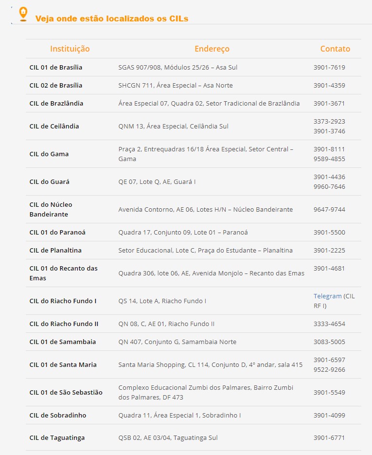 Ao todo, a secretaria de Educação do Distrito Federal possui 17 Centros Interescolares de Línguas CILs para os cursos de espanhol, francês, inglês e japonês com vagas para alunos da rede pública e comunidade.