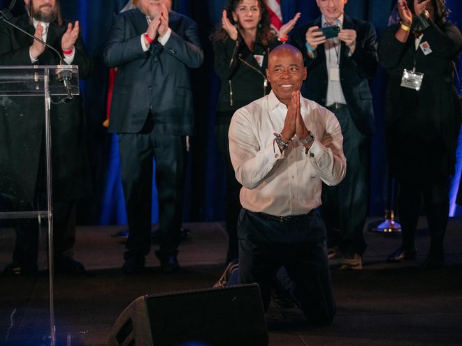 A certa altura, ele se juntou à governadora Kathy Hochul, uma expressão incomum de unidade entre um prefeito e governador de Nova York. “Estou aqui para declarar que um novo dia está amanhecendo”, disse Hochul, chamando o relacionamento deles de “uma nova forma de cooperação”. (A disputa para governador será decidida no próximo ano, quando ela enfrentará um grupo de políticos do Brooklyn, incluindo a procuradora-geral de Nova York Tish James, o advogado público Jumaane Williams e, potencialmente, o atual prefeito Bill de Blasio, que tem sugerido fortemente um corre.)