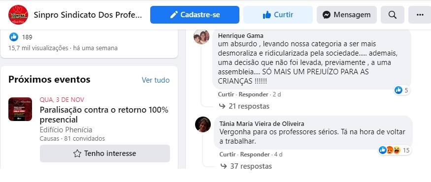 Esta medida política por parte do sindicato prejudica pais e alunos, que em sua grande maioria, é contrária à paralisação pois veem o forte cunho político da ação. O também professor e pai de duas alunas – Júlia Messias Medeiros (7 anos) do 2º ano e Marina Messias Medeiros (11 anos), do 5º ano, Alberto Júnior é um dos contrários ao levante do sindicato contra as voltas às aulas.