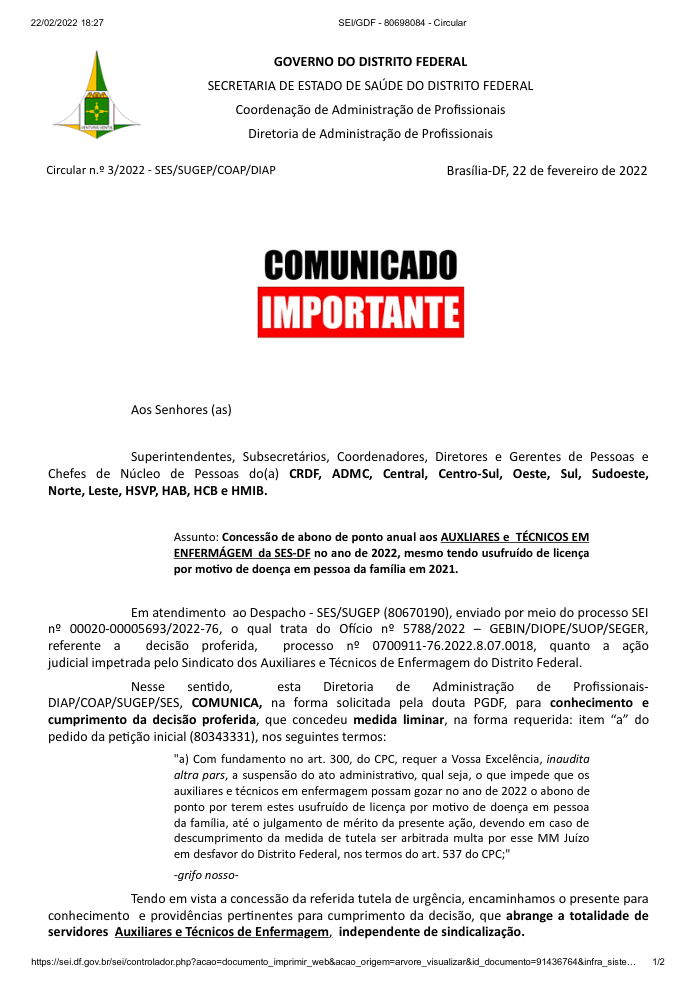 Nesta terça-feira (22/02) foi publicada a circular n° 03/2022 que libera a concessão do Abono de Ponto anual aos servidores em 2022, mesmo que tenham se ausentado por motivo de doenças em pessoas da família em 2021.