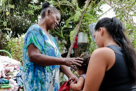 “Lá, temos o costume de levar as pessoas para ser benzidas quando estão com alguma dor, com um machucado, quando estamos bocejando muito ou, ainda, quando a criança está muito agitada”, conta ela. A filha, Nair Angélica, já está acostumada e, agora, levou o pequeno Miguel para receber o que ela teve muito na infância. “Lembro-me da minha mãe levando a gente. Saímos mais leves”, destaca, ao lado do marido, Vilar Cardozo, benzido pela primeira vez.