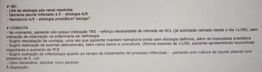 Depois de ter falado tudo isso, eu fiz questão de demonstrar que o diálogo entre equipe médica e familiares é fundamental. Tendo por parte do primeiro, o dever legal de informar e esclarecer quaisquer questões sobre dúvidas a cerca da terapêutica do paciente. Situação omissa no caso em questão.