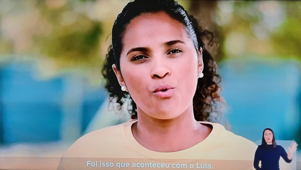 Já os marqueteiros de Lula, optaram desde o primeiro turno das eleições, pela imagem da atriz negra, cantora e compositora Thalma de Freitas.