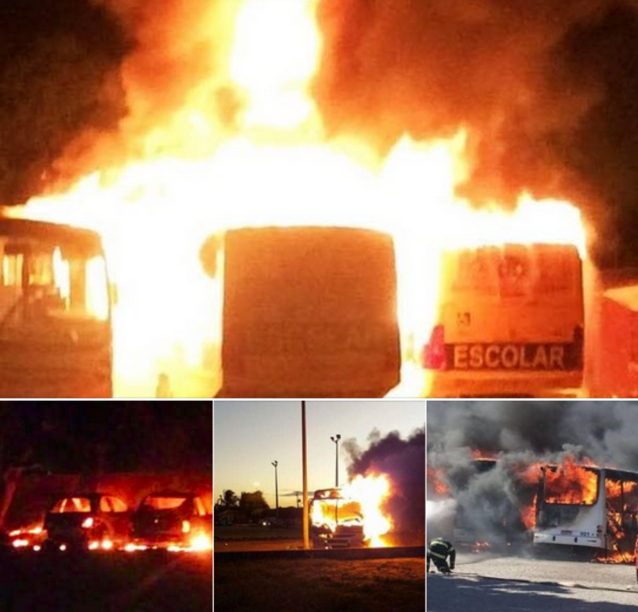 O Rio Grande do Norte está sob ataques orquestrados por uma organização criminosa denominada de [sindicato do crime] que, supostamente, têm protestado contra as condições nas penitenciárias. Diversos ataques incendiários foram registrados contra prédios públicos, unidade de polícia incendiada e metralhada, fórum de Justiça, duas bases da Polícia Militar, estabelecimentos comerciais e veículos públicos e particulares foram incendiados, inclusive o transporte público em pelo menos 19 cidades.