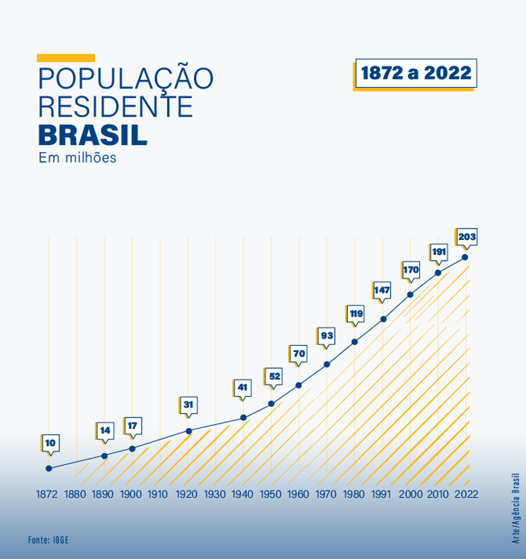 O Instituto Brasileiro de Geografia e Estatística (IBGE) divulgou nesta quarta-feira (28) os primeiros resultados do Censo Demográfico 2022, revelando que a população do Brasil alcançou 203.062.512 habitantes. Esse número representa um aumento de 12,3 milhões de pessoas em relação ao último censo realizado em 2010. O crescimento médio anual da população nos últimos anos foi de 0,52%, a taxa mais baixa registrada desde o primeiro censo realizado em 1872.
