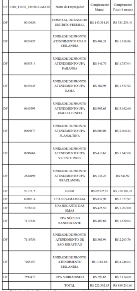 Art. 8º As instituições contempladas pelo repasse da assistência financeira e a Secretária de Saúde do Distrito Federal observaram o seguinte cronograma mensal: I – até o dia 5 do mês da competência respectiva, as instituições contempladas, deverão atualizar e confirmar os dados dos seus profissionais; II – até o dia 15 do mês da competência respectiva, a Secretária de Saúde deverá atualizar e confirmar os dados dos seus profissionais e dos vinculados às entidades privadas sob sua gestão; III – será feita a depuração da base de dados, pelo Ministério da Saúde, na forma do inciso II do art. 1120-C da Portaria que regulamentou o auxílio financeiro; IV – até o dia 25 do mês da competência respectiva, será publicada portaria do Ministro de Estado da Saúde com os dados relativos ao repasse; V – até o dia 30 do mês da competência respectiva, será publicada portaria pela Secretária de Saúde com os dados relativos ao repasse as instituições contempladas e seus respectivos valores e envio de Ofício com os nomes, CPF e valor complementar dos profissionais que possuem direito, extraído pelo Sistema INVESTSUS. VI – até o último dia útil do mês da competência respectiva, haverá a efetivação do repasse pelo FNS ao Fundo de Saúde do Distrito Federal e que deverá efetuar o pagamento dos recursos financeiros aos estabelecimentos de saúde em 30 dias.