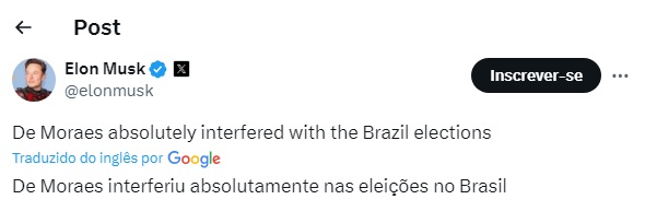Tensões entre Elon Musk e Alexandre de Moraes alcançam novo patamar: acusações de fraude nas eleições brasileiras