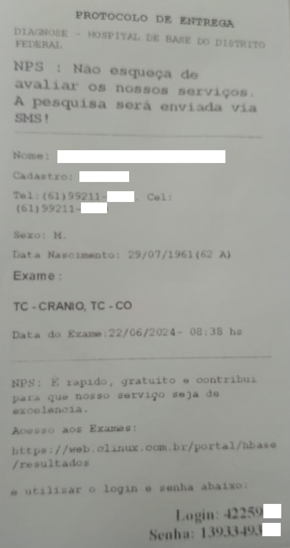 - Local: Hospital de Base, Ala 4, corredor azul, Radiologia Ambulatório