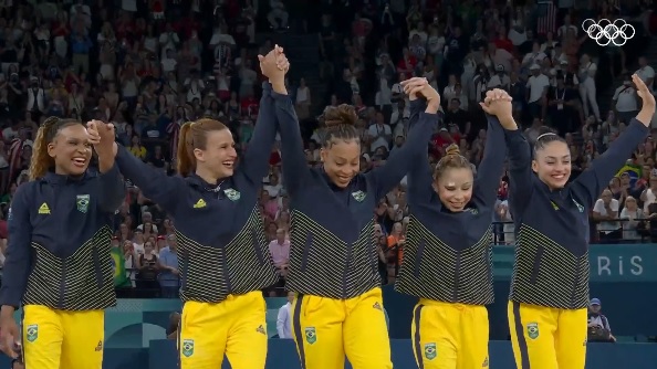 Rebeca Andrade liderou a equipe brasileira a uma medalha inédita de bronze na ginástica artística por equipes. Aos 25 anos, Rebeca alcançou seu terceiro pódio olímpico. Anteriormente, ela havia conquistado a prata no individual geral e o ouro no salto em Tóquio. Em Paris, Rebeca, junto com suas companheiras de equipe Flávia Saraiva, Jade Barbosa, Júlia Soares e Lorrane Oliveira, garantiu o bronze, marcando um momento histórico para a ginástica brasileira.