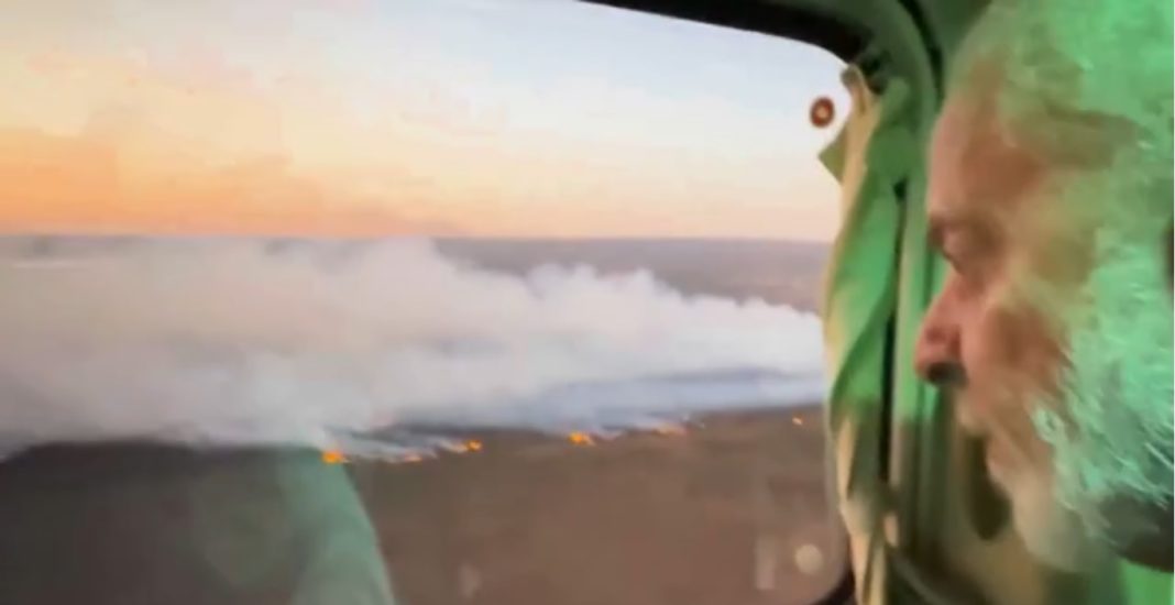 Neste domingo, juntamente com a Janja, sobrevoei o Parque Nacional afetado por um incêndio de grandes proporções, como tantos que têm ocorrido por todo o país. O governo federal está atuando junto com o Corpo de Bombeiros do DF para ajudar no combate às chamas.