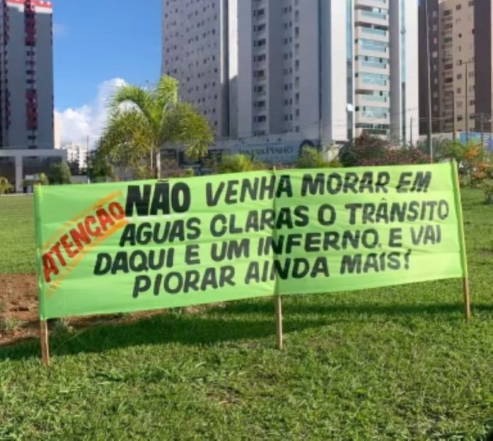 O sinal mais recente desse mal-estar surgiu com faixas críticas expostas por moradores, advertindo novos potenciais residentes sobre o cotidiano no trânsito local. “Atenção: não venha morar em Águas Claras, o trânsito daqui é um inferno e vai piorar ainda mais”, diz uma delas, refletindo o cansaço de quem lida diariamente com engarrafamentos e obras constantes.