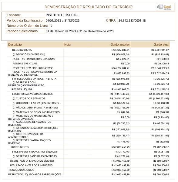 DEMONSTRAÇÃO DE RESULTADO DO EXERCÍCIO 2023