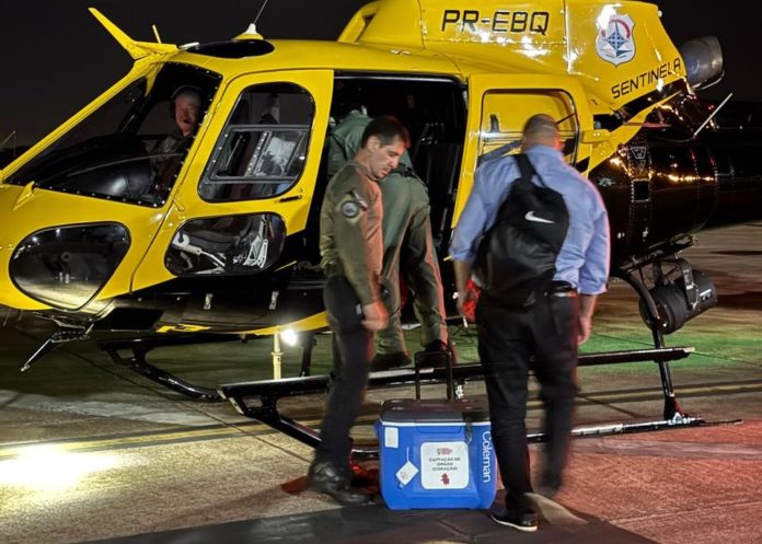 A tripulação foi composta pelo comandante Sergio Dolghi, copiloto Rafael Sena e operador aerotático Guilherme Goulart. A parceria entre o Detran-DF e a Central Estadual de Transplantes do Distrito Federal (CET-DF) começou em 2015 e tem garantido agilidade ao transporte de órgãos para transplantes realizados no Distrito Federal. Nesses dez anos, o helicóptero Sentinela do Detran-DF realizou o transporte de 78 corações.