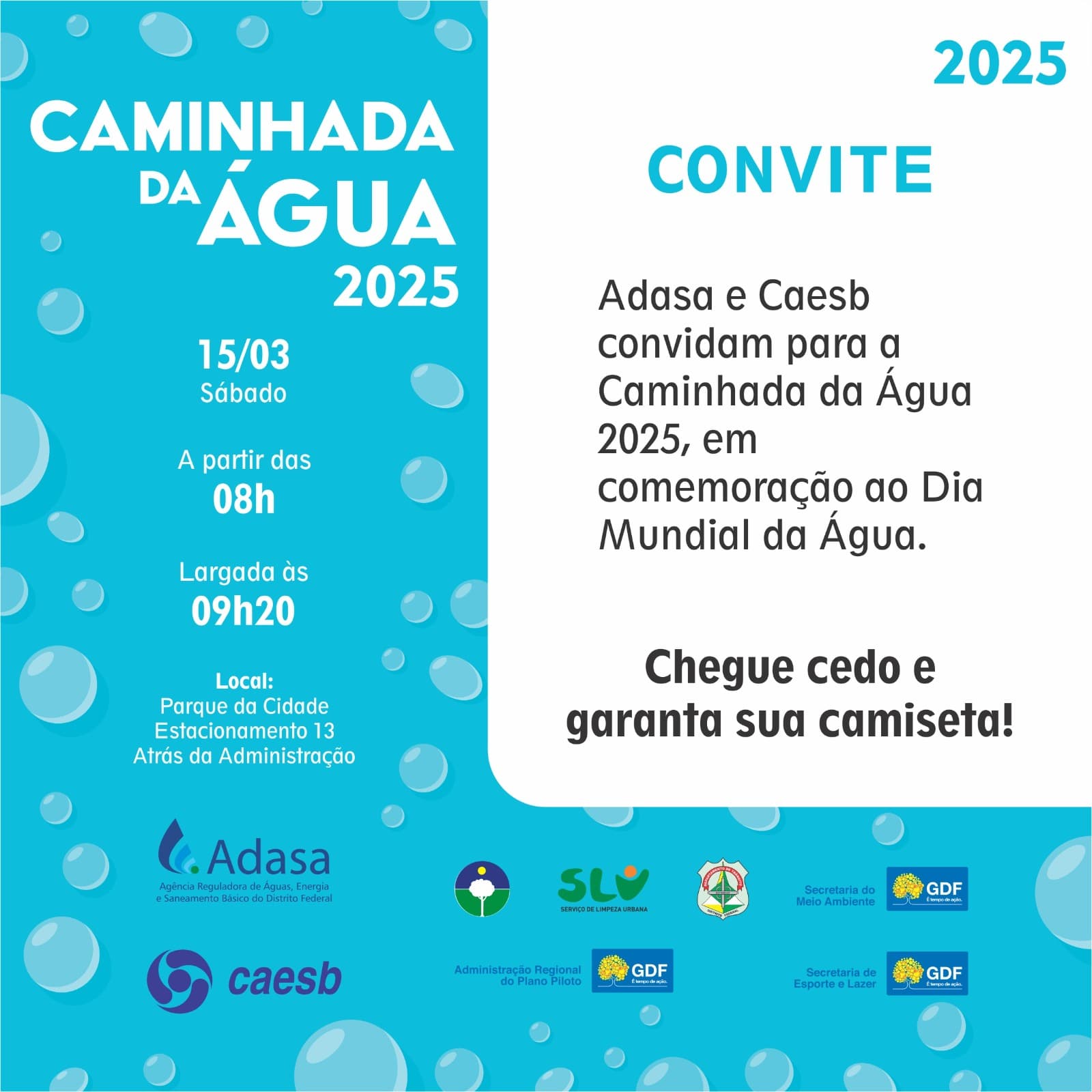 No próximo sábado, dia 15 de março, o Parque Sarah Kubitschek vai se transformar no cenário perfeito para mais uma edição da Caminhada da Água, promovida pela Agência Reguladora de Águas, Energia e Saneamento Básico do Distrito Federal (Adasa) e Companhia de Saneamento Ambiental do Distrito Federal (Caesb) em homenagem ao Dia Mundial da Água, celebrado em 22 de março. O evento conta com o apoio do Serviço de Limpeza Urbana do DF (SLU), Secretaria de Esporte e Lazer (SELDF), Secretaria de Meio Ambiente (Sema-DF) e Administração Regional do Plano Piloto e promete envolver o público presente em uma jornada de valorização dos recursos hídricos.