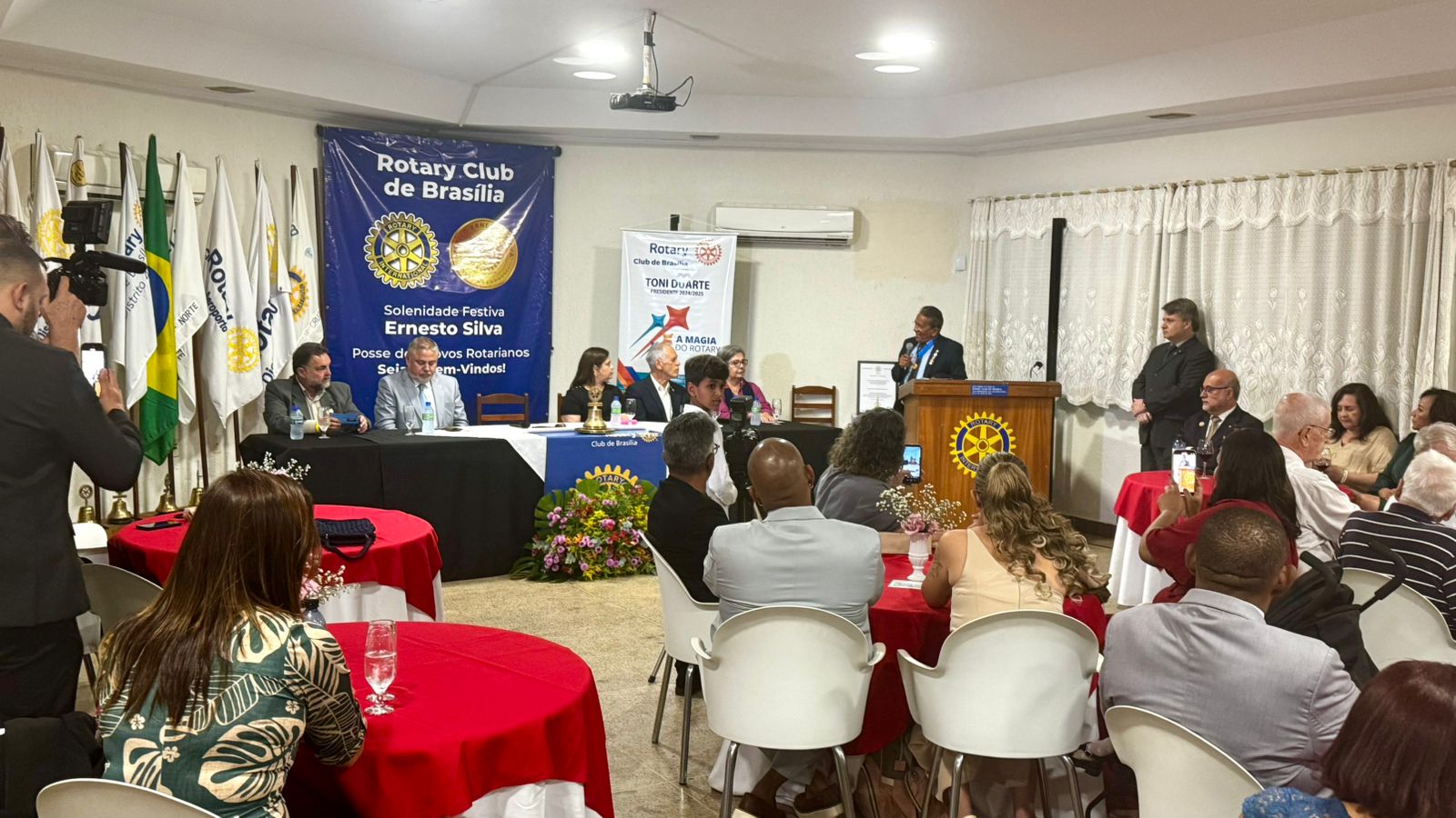 Toni Duarte reforçou a relevância do Rotary Club de Brasília como um “movimento vivo” que, ao longo de 67 anos, tem promovido ações locais, como apoio a escolas e comunidades vulneráveis, e globais, como a luta pela erradicação da pólio.