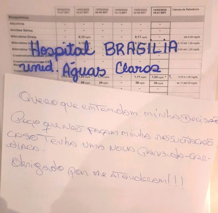 Essas palavras, escritas de próprio punho por H.A.S., 49 anos, internado no Hospital Brasília – Unidade Águas Claras, escancararam uma ferida que a sociedade brasileira tenta esconder: até onde vai o direito de morrer em paz?