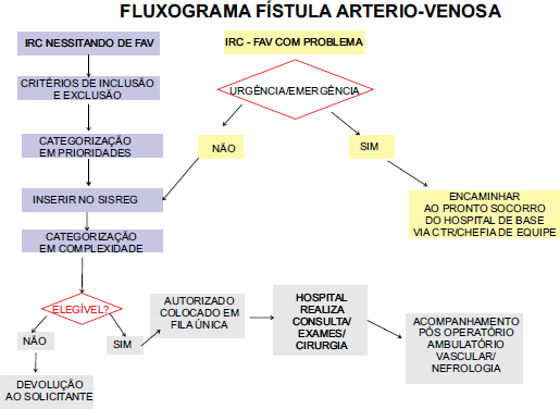 A confecção de FAVs e cateteres está a cargo de equipes de nefrologia e cirurgia vascular da rede SES-DF, com distribuição das vagas conforme capacidade de cada hospital. Cirurgias de maior complexidade (como FAV femoro-femoral ou com veia safena) serão realizadas no Hospital de Base. Já as FAVs nativas – radiocefálica, braquiocefálica, ulnar-basílica – poderão ser realizadas em outros hospitais da rede.