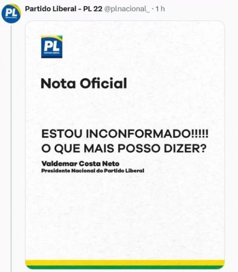 A nota oficial divulgada pela sigla, assinada pelo próprio Valdemar, foi curta, emocional e politicamente irrelevante. Nenhuma defesa jurídica robusta, nenhum ataque articulado ao STF, nenhuma promessa de mobilização. Apenas um desabafo pessoal, mais próximo de uma legenda de Instagram do que de um posicionamento partidário diante da maior ofensiva institucional contra um ex-presidente da República desde a redemocratização.