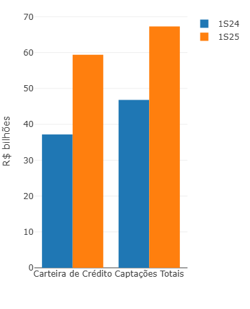Segundo relatório financeiro divulgado pelo banco, os ativos totais atingiram R$ 74,5 bilhões, um avanço de 40,7% em 12 meses. O patrimônio líquido subiu para R$ 4,0 bilhões [(+60,1%)], enquanto a carteira de crédito chegou a R$ 59,4 bilhões [(+59,4%)], puxada principalmente pelo crédito consignado, responsável por mais da metade das operações.