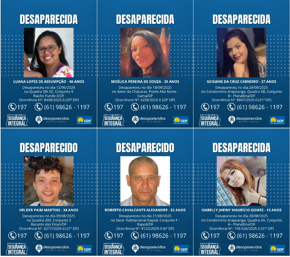 Com a instituição da Política Distrital de Atenção Humanizada ao Desaparecimento de Pessoas, o Governo do Distrito Federal reafirma o compromisso em garantir respostas mais rápidas, coordenadas e humanizadas diante dos casos de desaparecimento, fortalecendo a atuação conjunta entre poder público, sociedade civil e familiares.